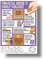 If you have experienced family violence including financial abuse and are not currently in a crisis situation, you can contact the Financial Independence Hub to access financial coaching and support